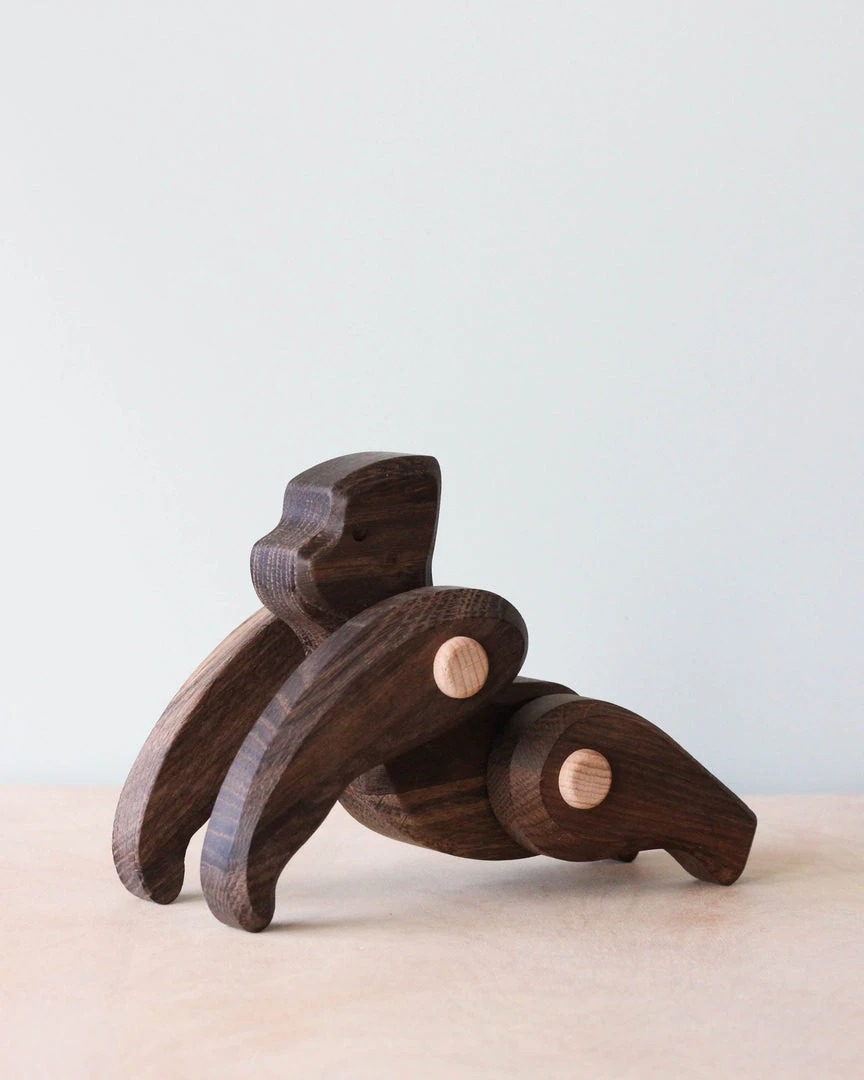 This adorable wooden gorilla is lightweight and easy to play with. The limbs can be moved so your child can imitate the real movements of this  endangered animal.  Made for ages 1.5+ years and up. Not a teething toy.Â
