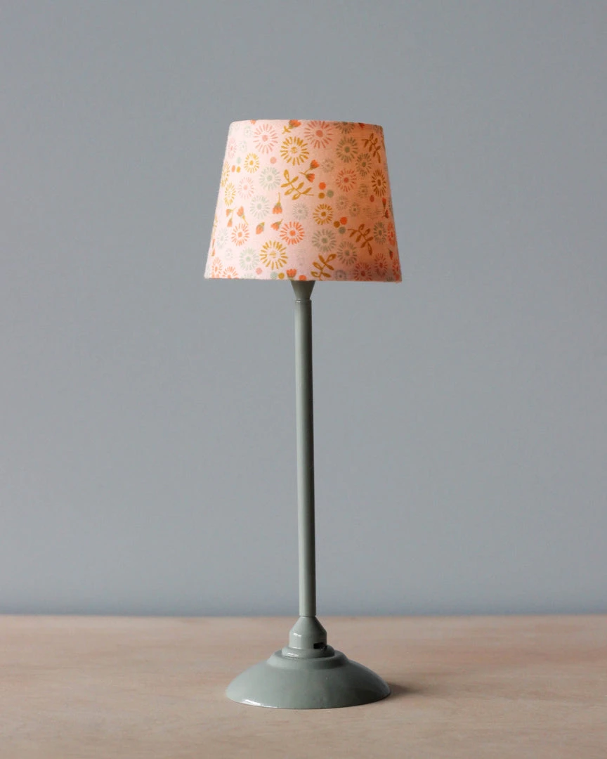 Our beautiful Maileg Miniature Floor lamp is a must have. The lamp will light up the room with a soft tone – remember to turn off the light when our friends go to bed. Battery included.Â
