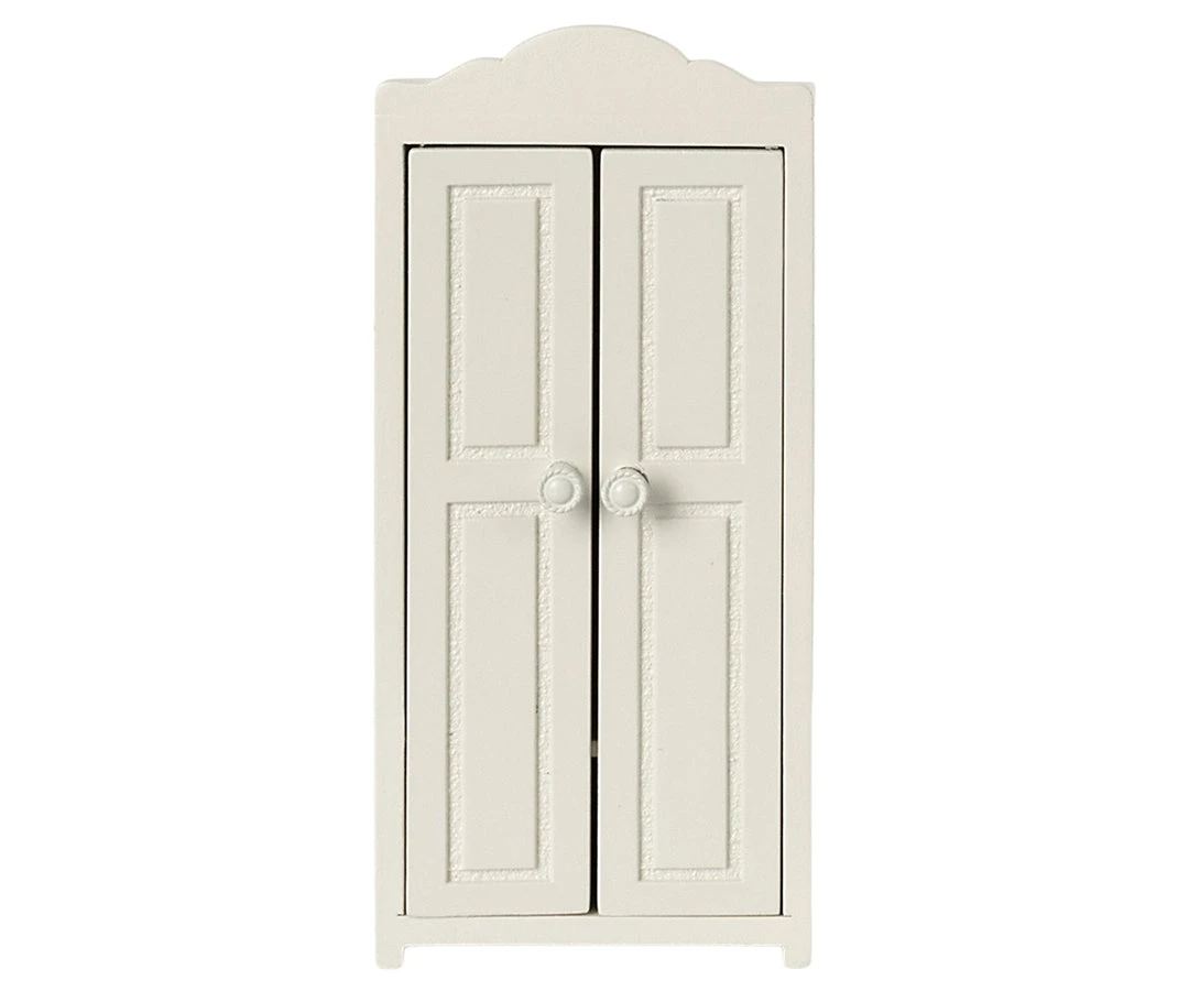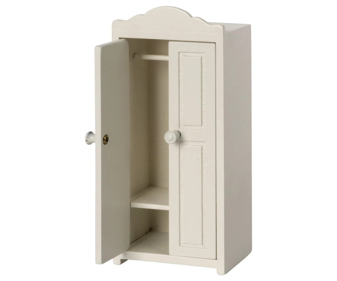 A small closet made of FSC wood. It helps the mice family organizing their wardrobe. The closet comes with 3 golden hangers.