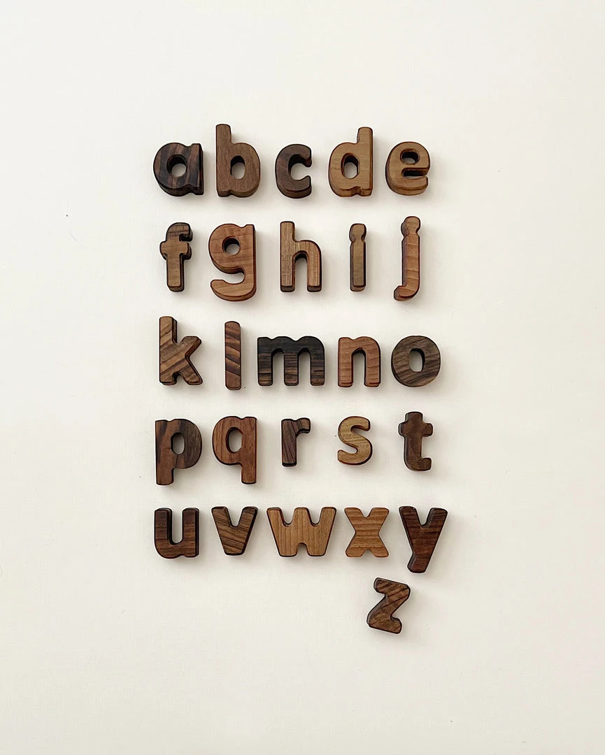 This set includes the lowercase alphabet and a storage bag. The letters are made in Turkey and are coated with natural oil.