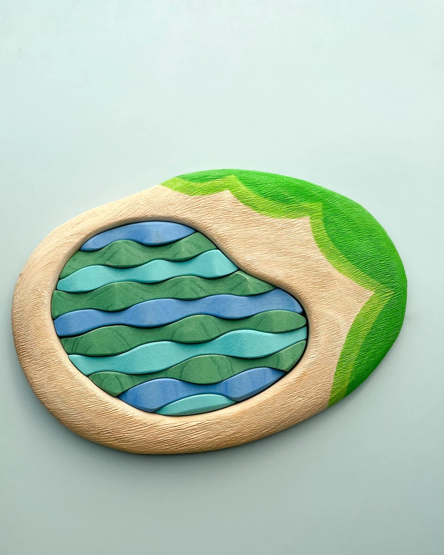 Handmade from maple wood and painted with non-toxic paint and coated with linseed oil.