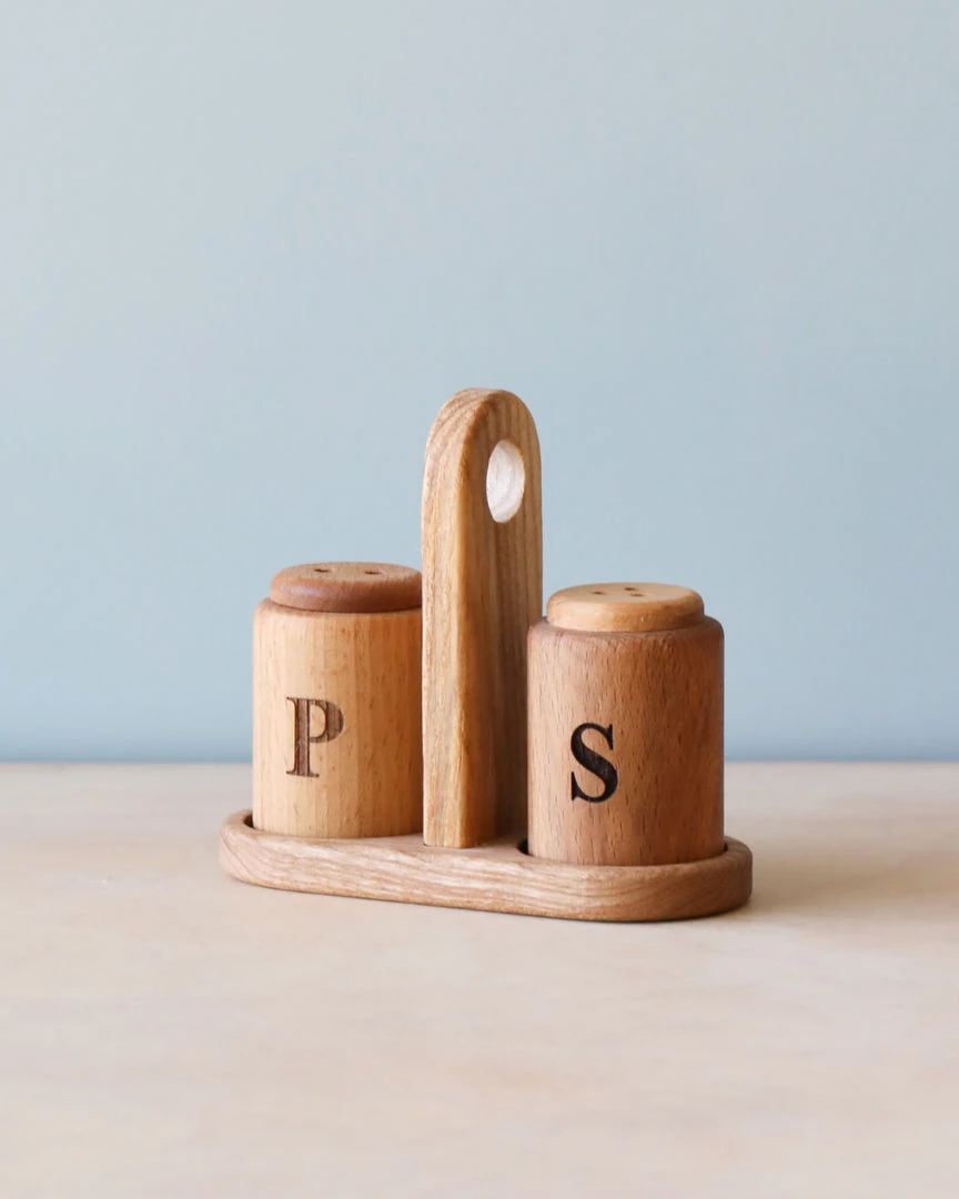 Handmade from ash wood, this salt and pepper shaker will make a rattling noise when you shake them!Â