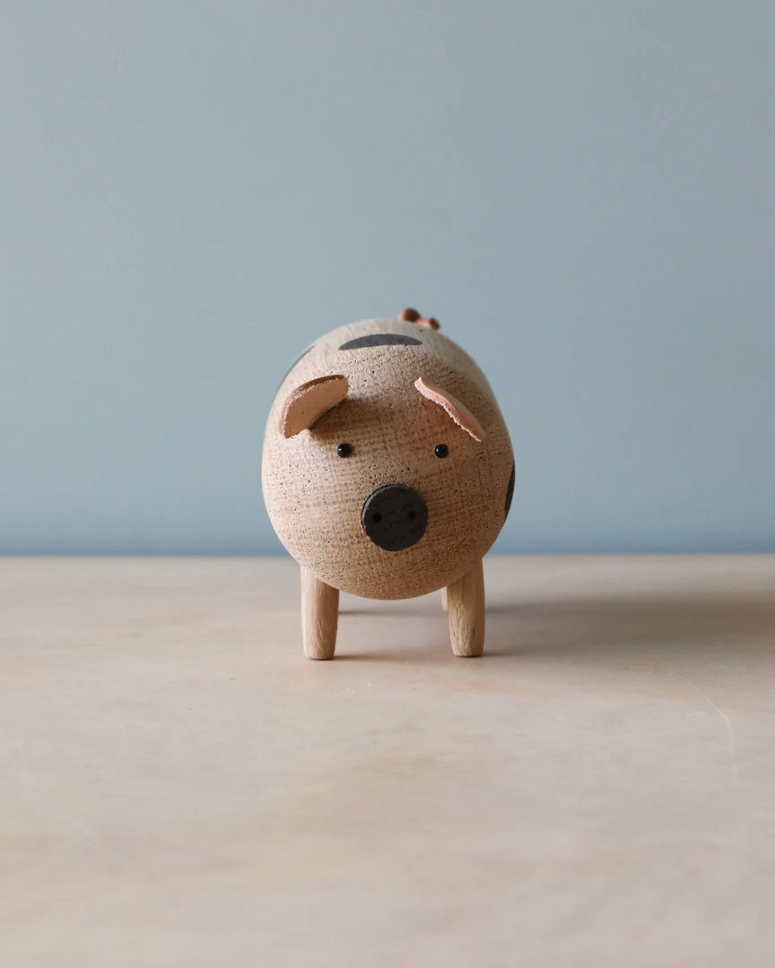The wooden figure Bubba Pig is made of oak and has finely painted details. With its natural and sweet expression, the figure will add warmth and a playful expression to the decor. The figure is suitable in every room of the home.