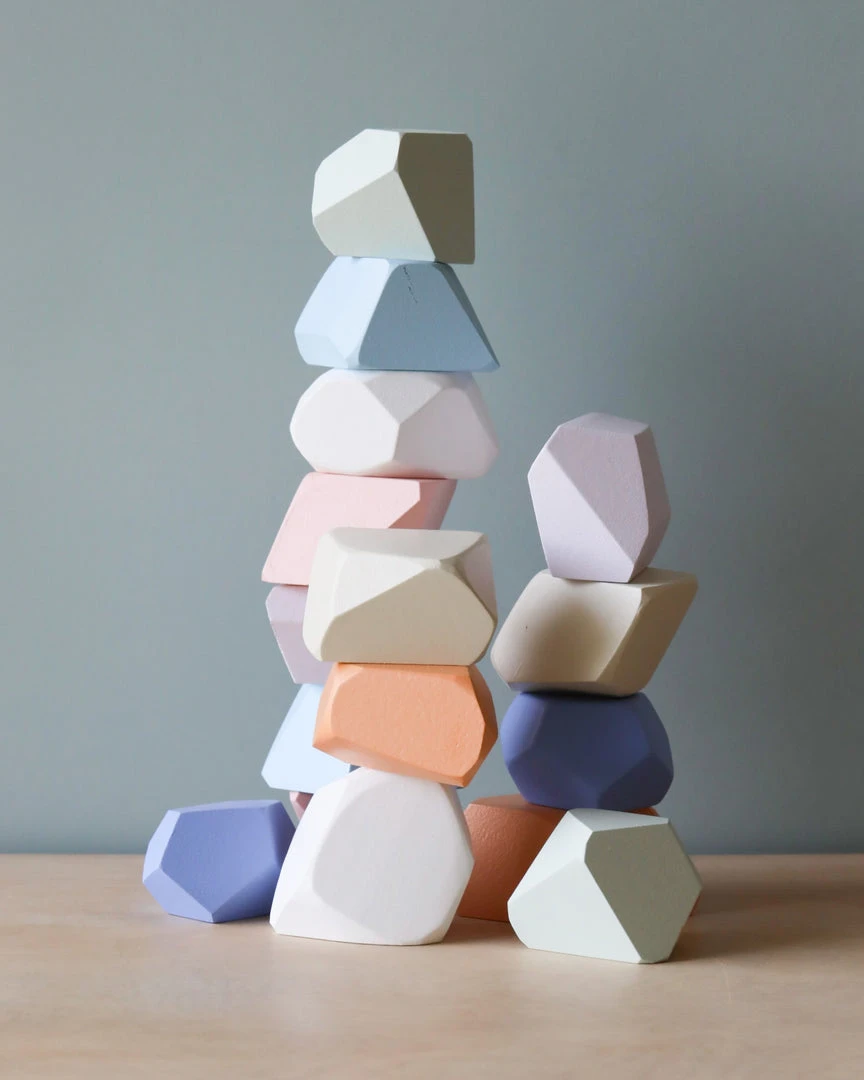 A customer favorite, “Terra” was created from the color palette of elements: earth, air, water, and fire. Sky blue, earthy red, vibrant orange, cloud white, and raw wooden blocks are all included in this 16 piece set.
