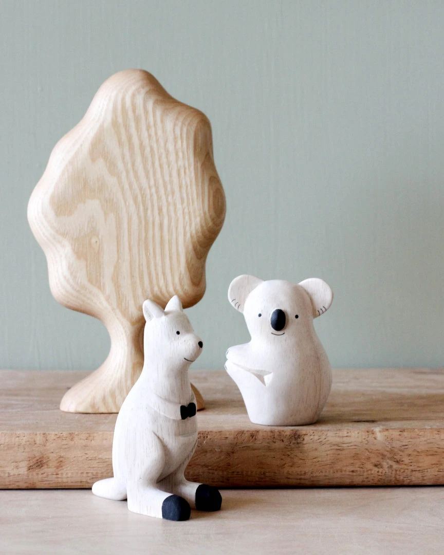 Each animal is hand carved from a soft light wood and then hand-painted with the sweetest expressions and patterns. Due to their handcrafted nature, each animal is slightly different.