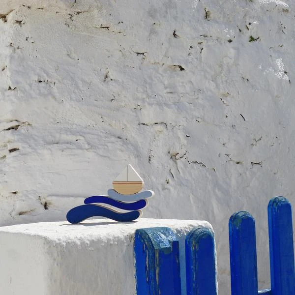 The boat & waves stacking toy is a minimalistic design that combines soft curves and colours with satin smooth natural wood surfaces. It is an open-ended, timeless toy to “play simple”, leaving space for the child’s imagination to flourish.