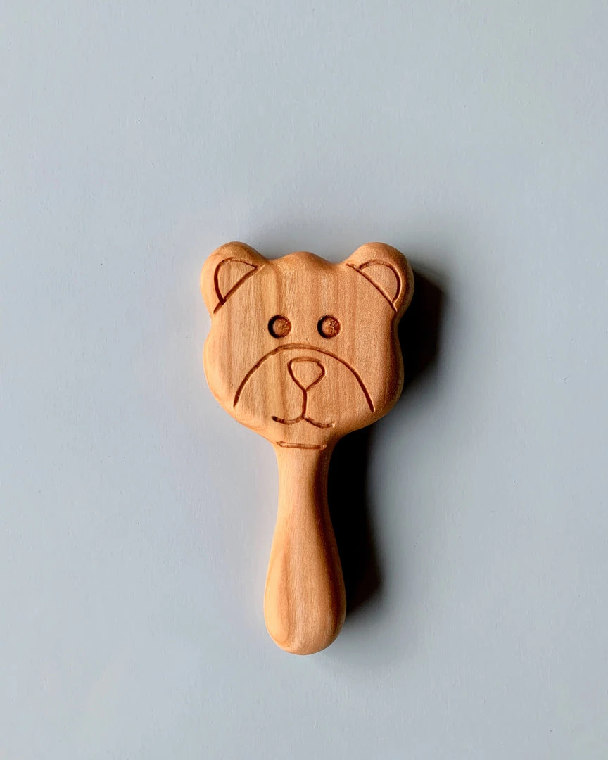 Handmade from cherry wood and soaked in linseed oil, this wooden teether is sanded meticulously to ensure that its smooth all around. Free of any harmful material, this is a great teether for little ones.